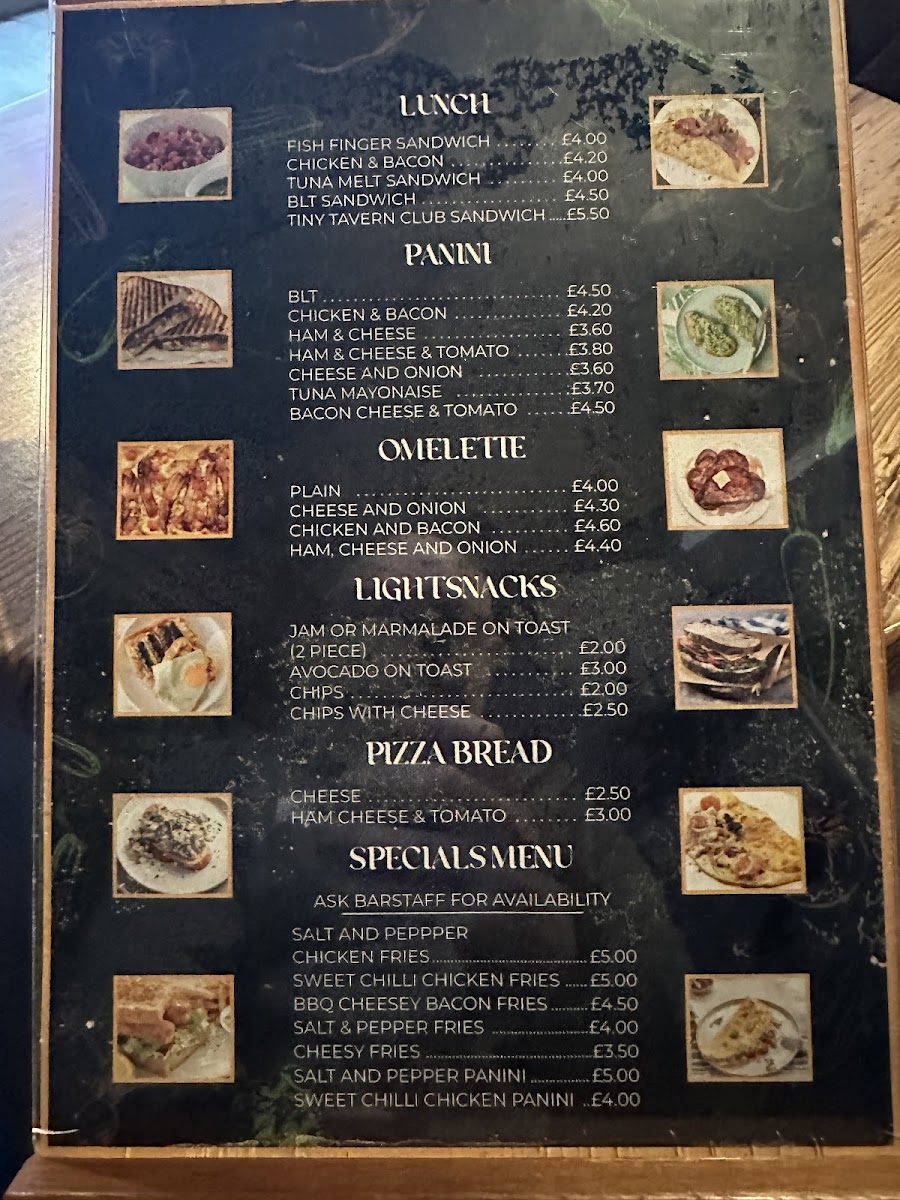 Tiny Tavern Ormskirk Menu